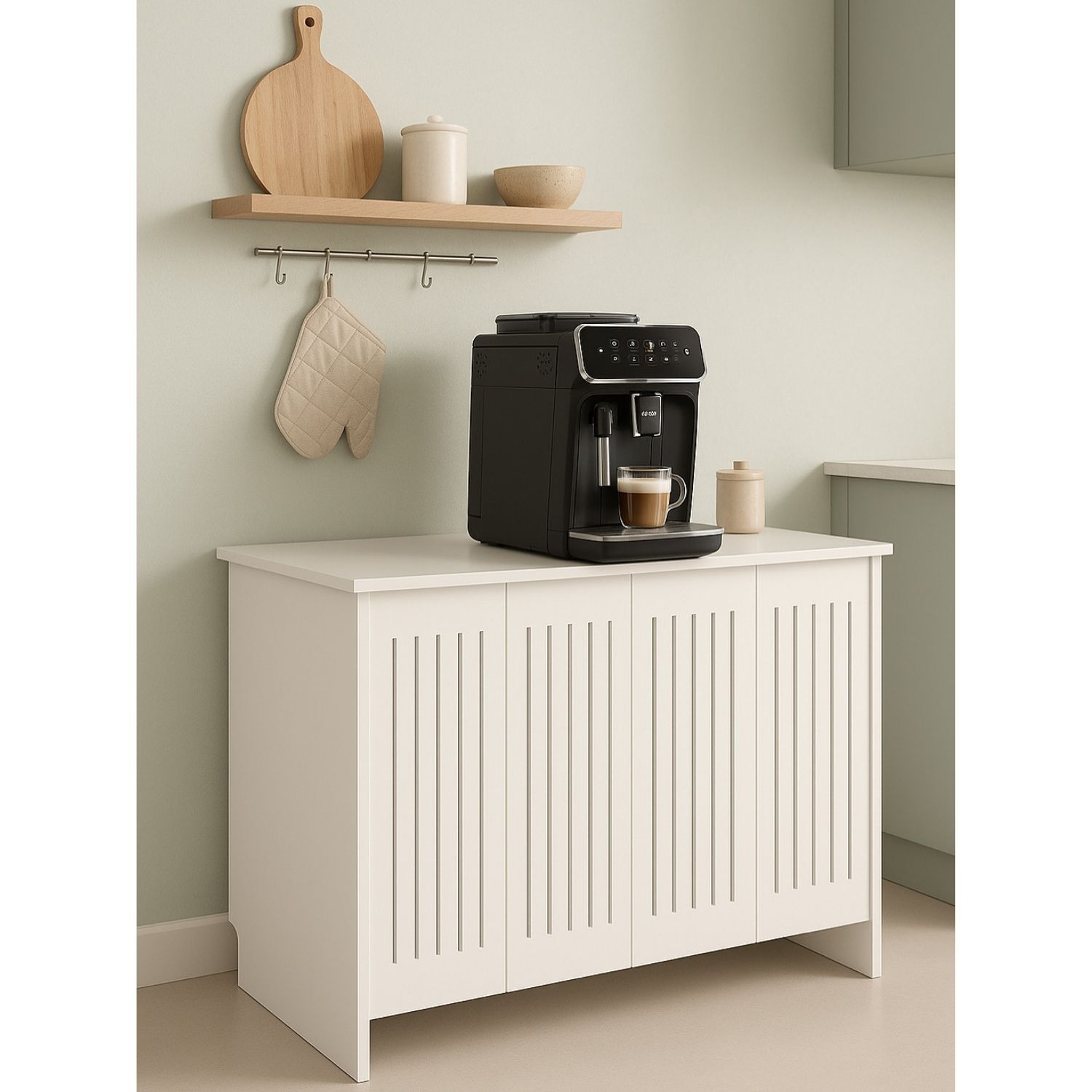 * 140 cm genişliğindeki geniş depolama alanı, kahve köşenizdeki eşyalarınız için ideal bir saklama çözümü sunar.